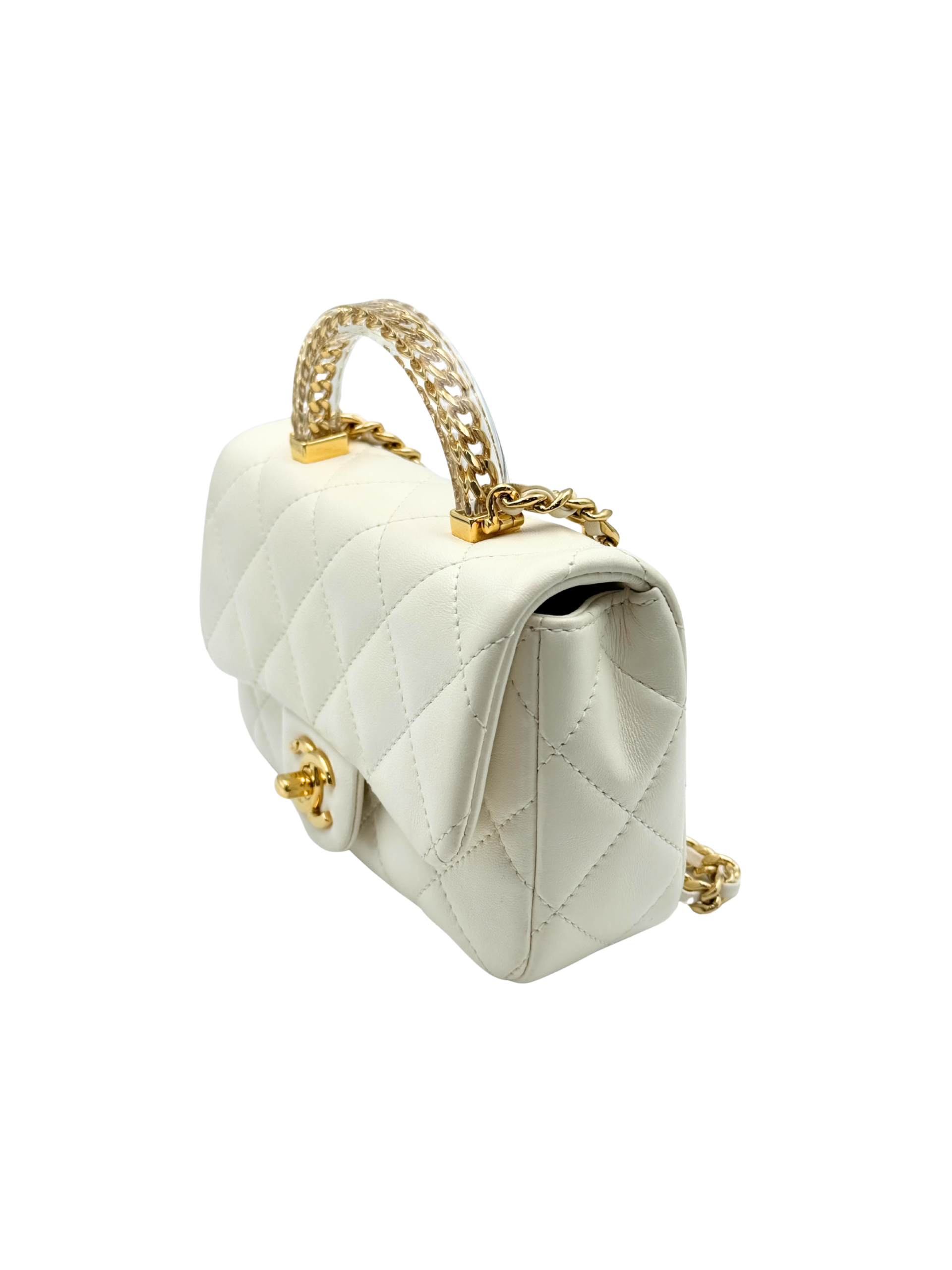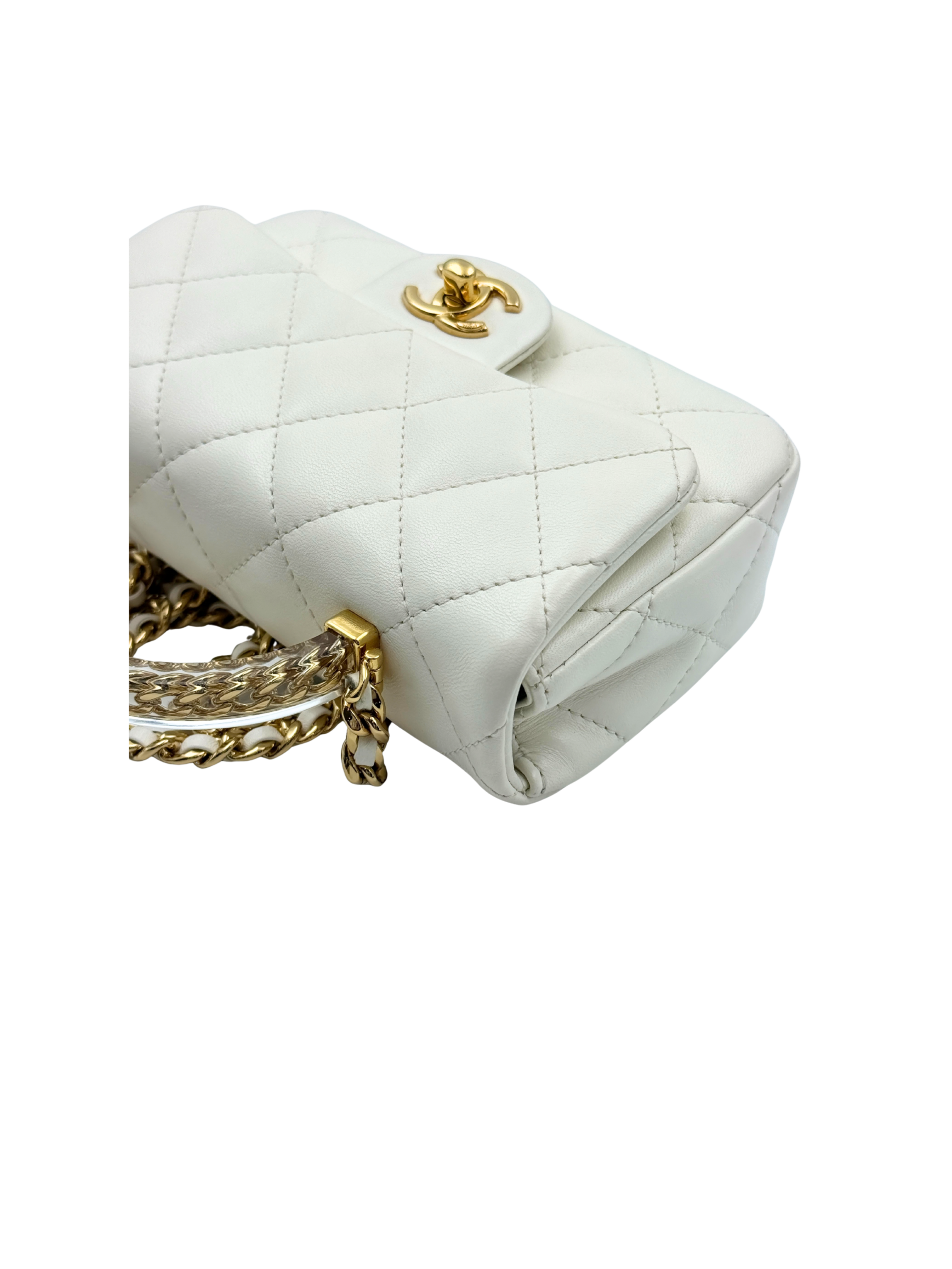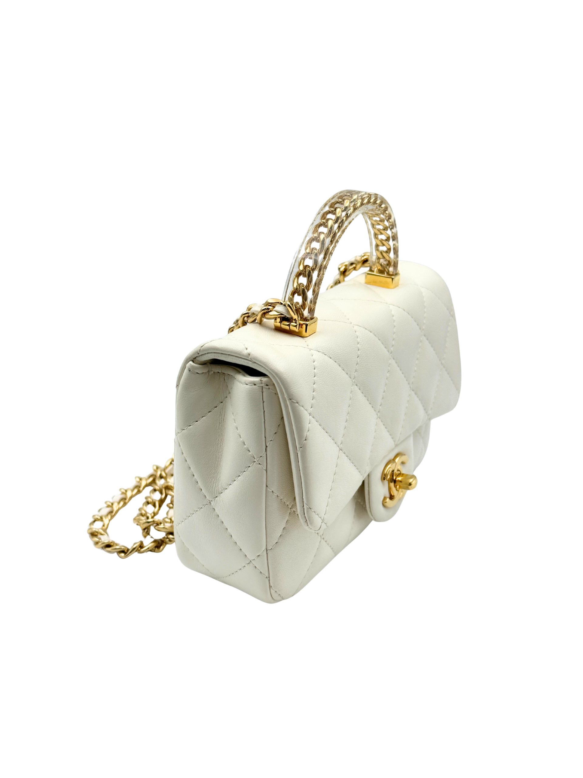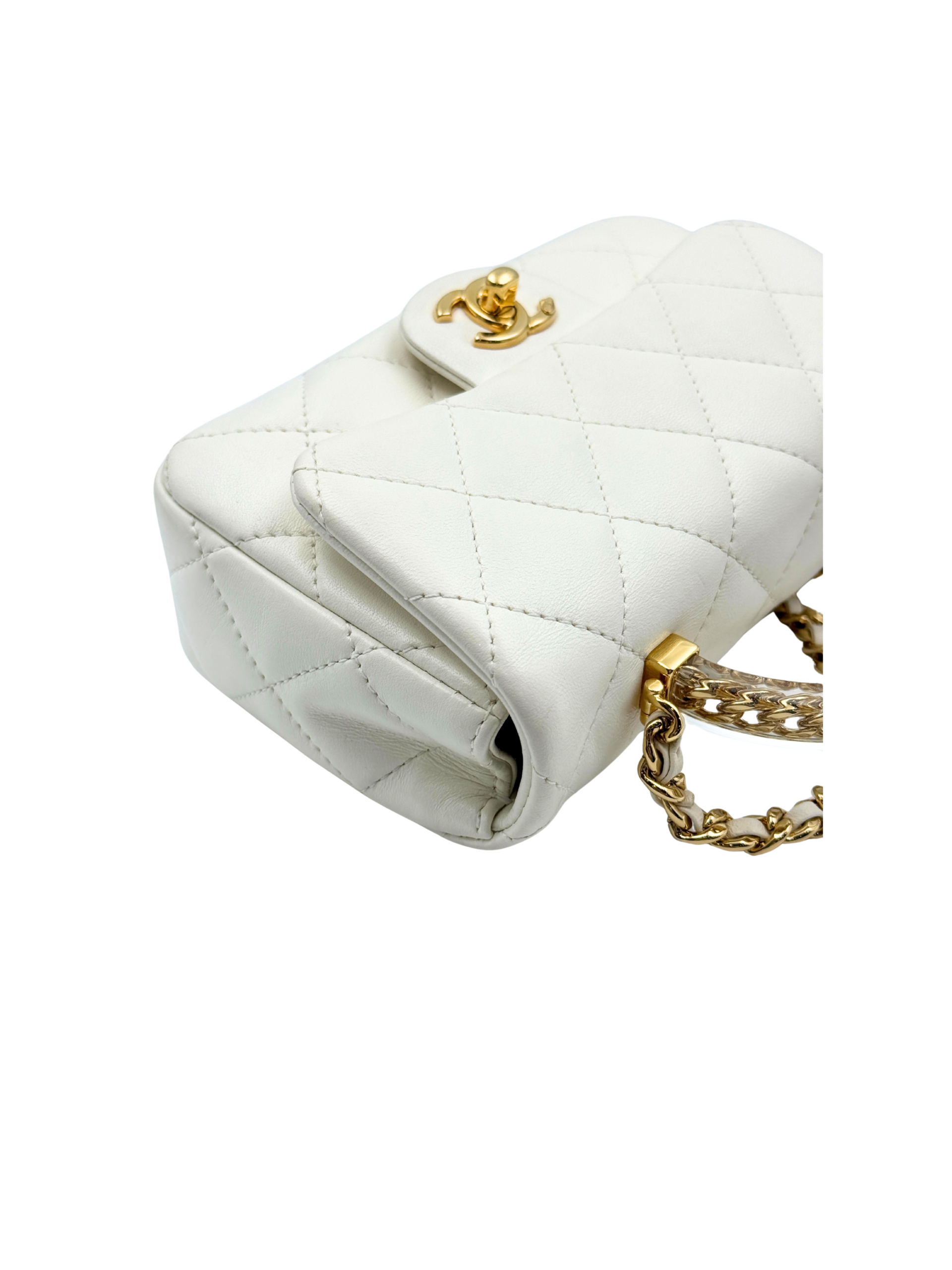 / CHANEL MINI FLAP WITH ACRYLIC HANDLE WHITE