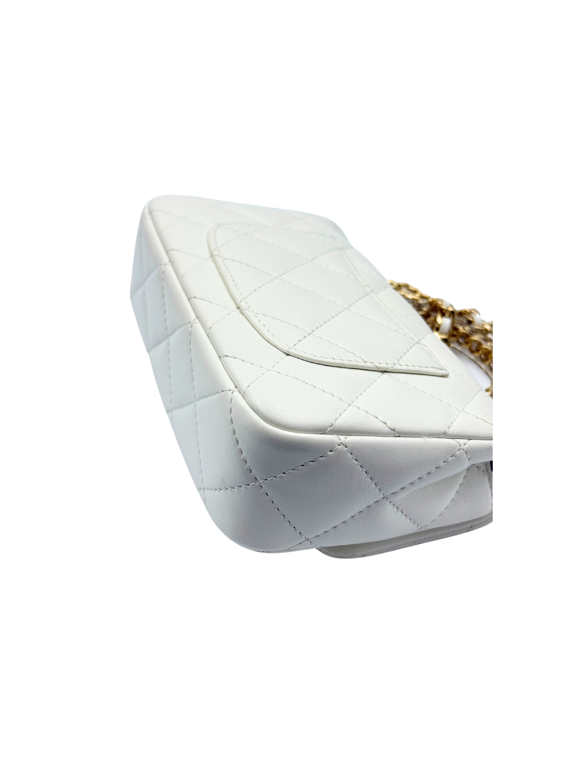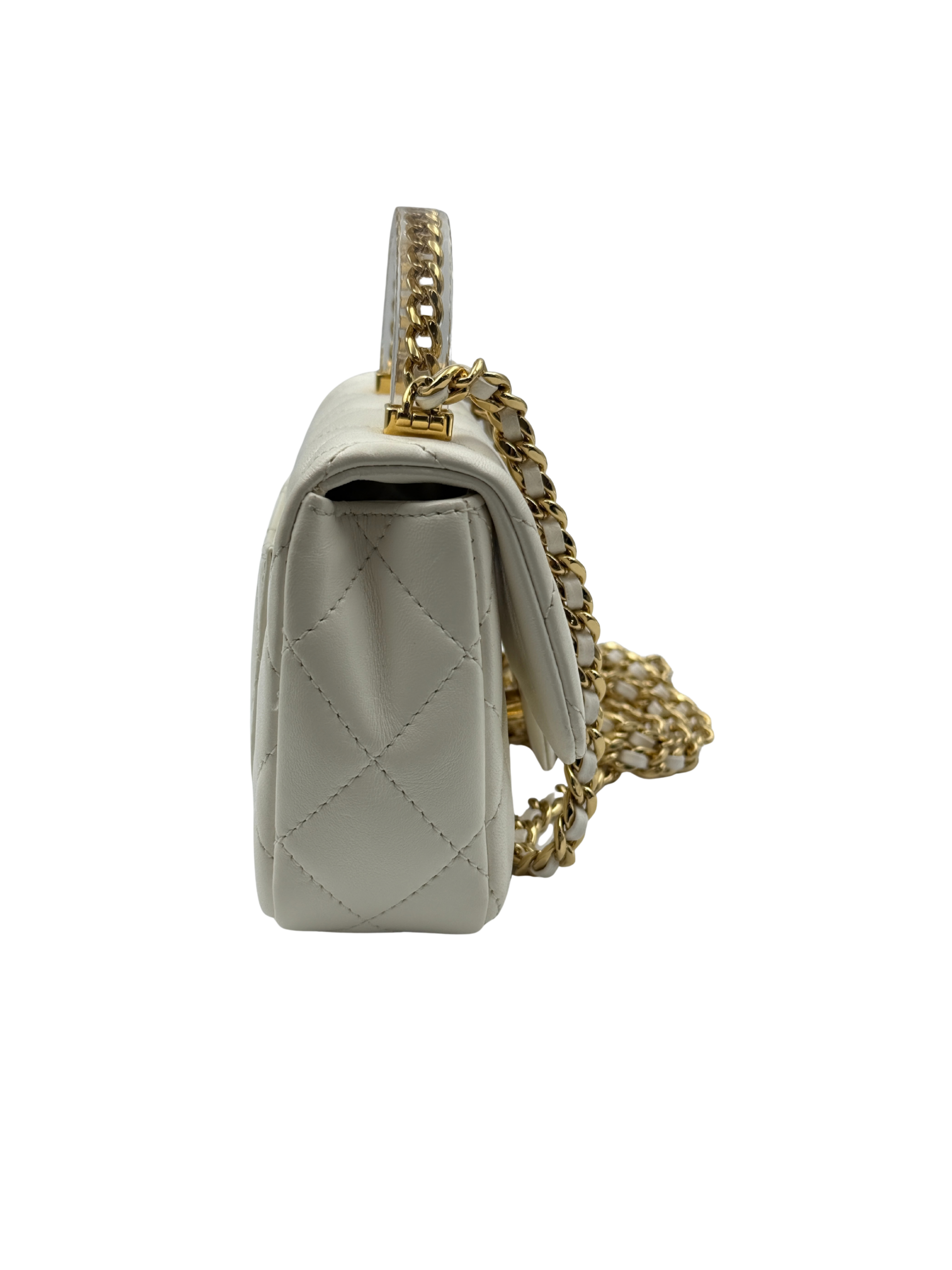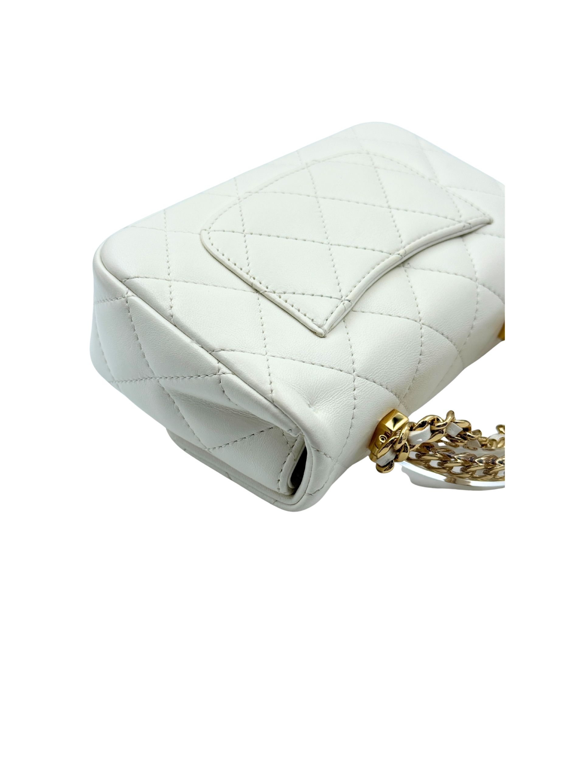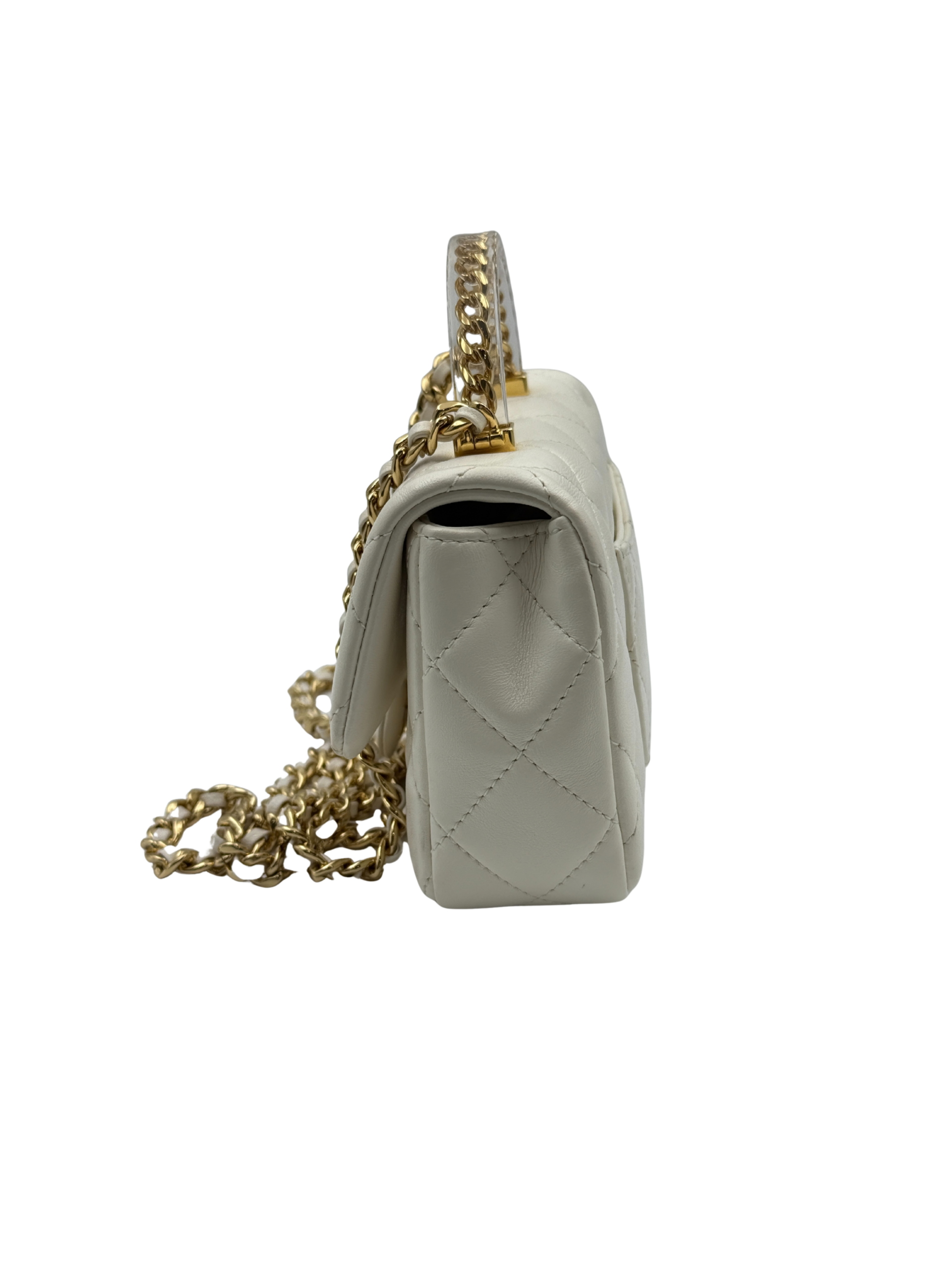 / CHANEL MINI FLAP WITH ACRYLIC HANDLE WHITE