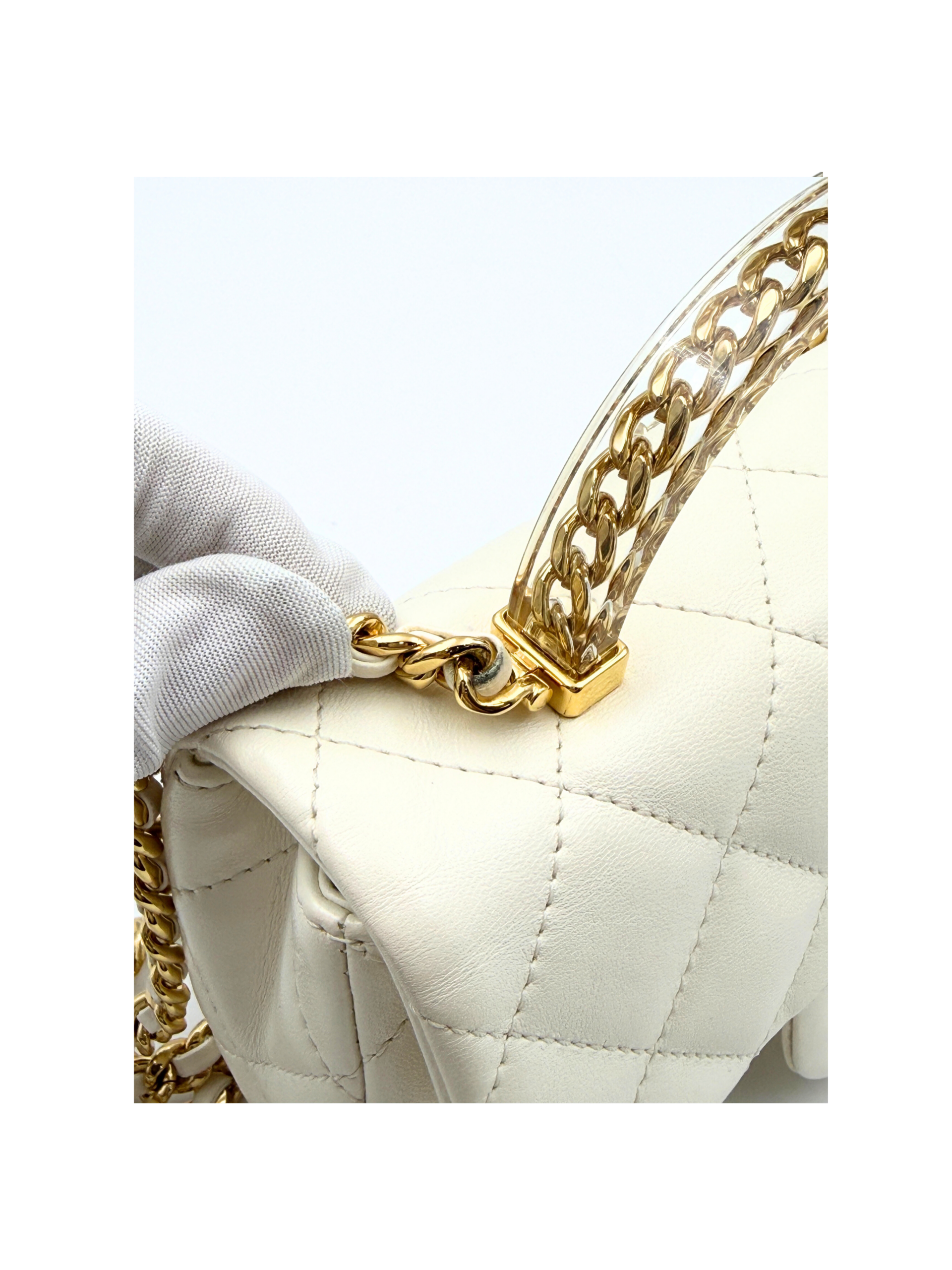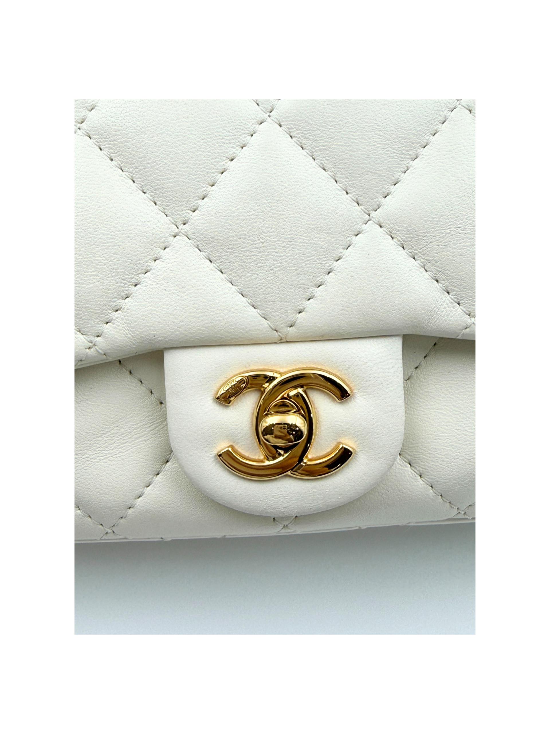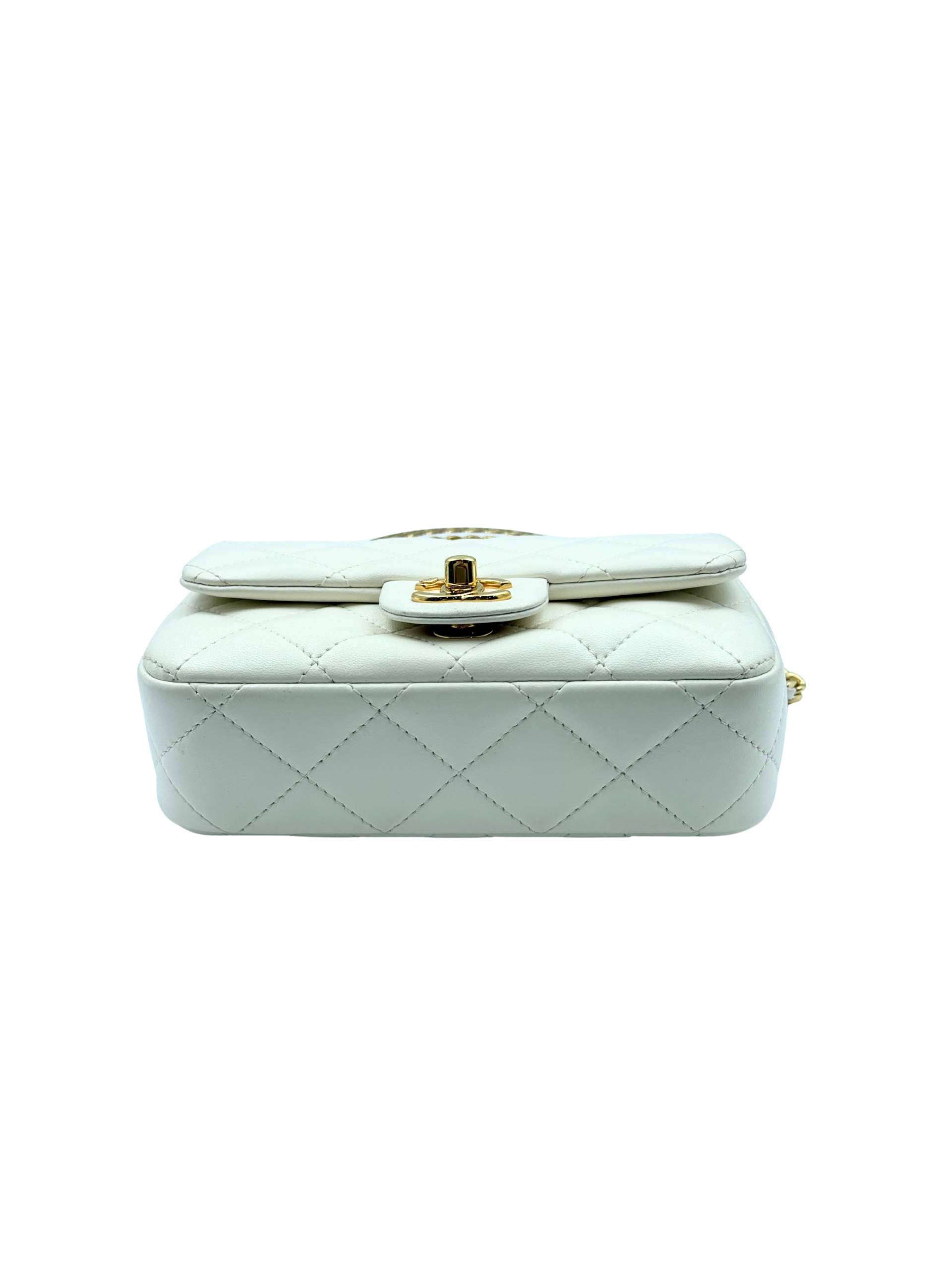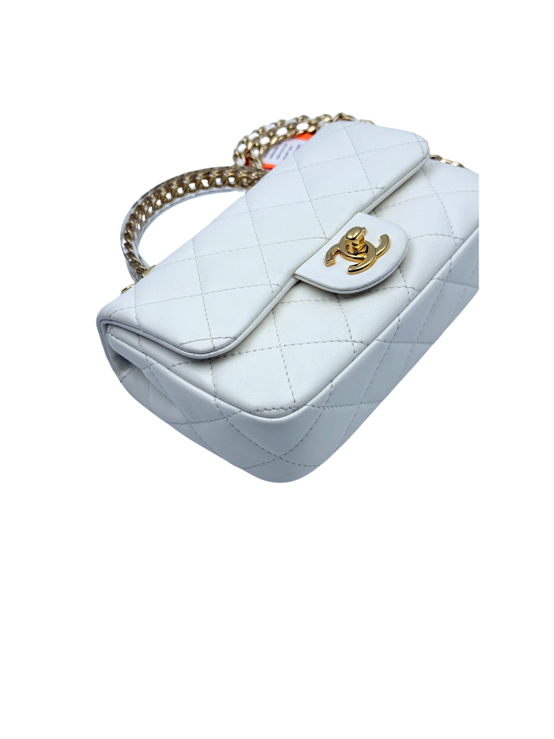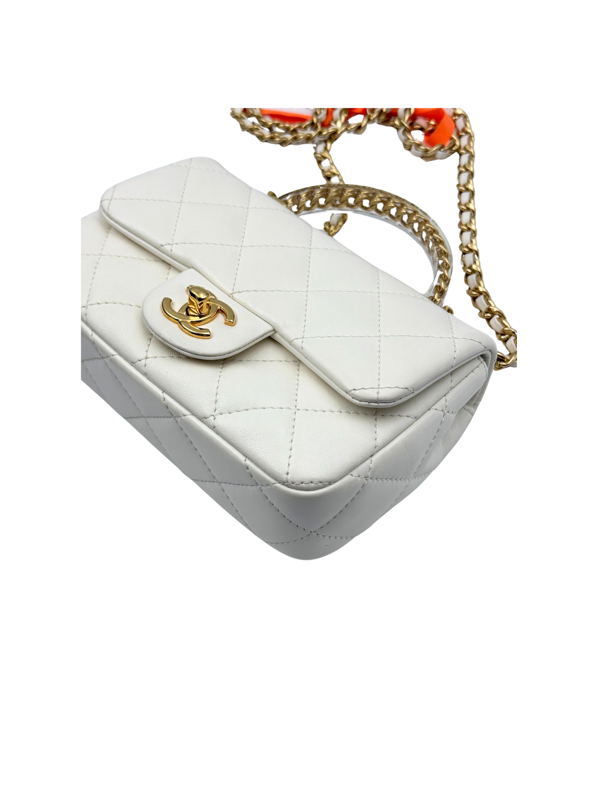 / CHANEL MINI FLAP WITH ACRYLIC HANDLE WHITE