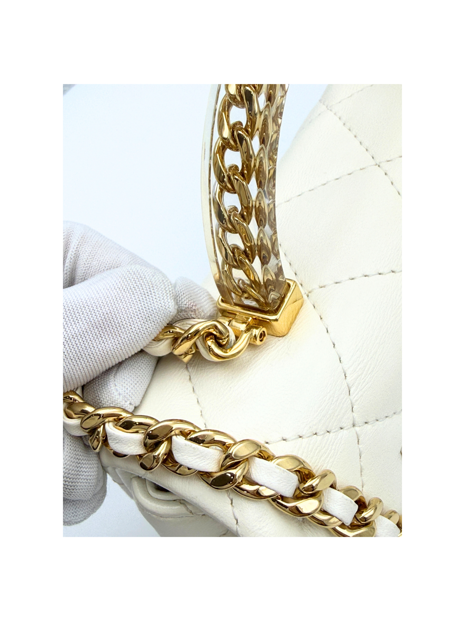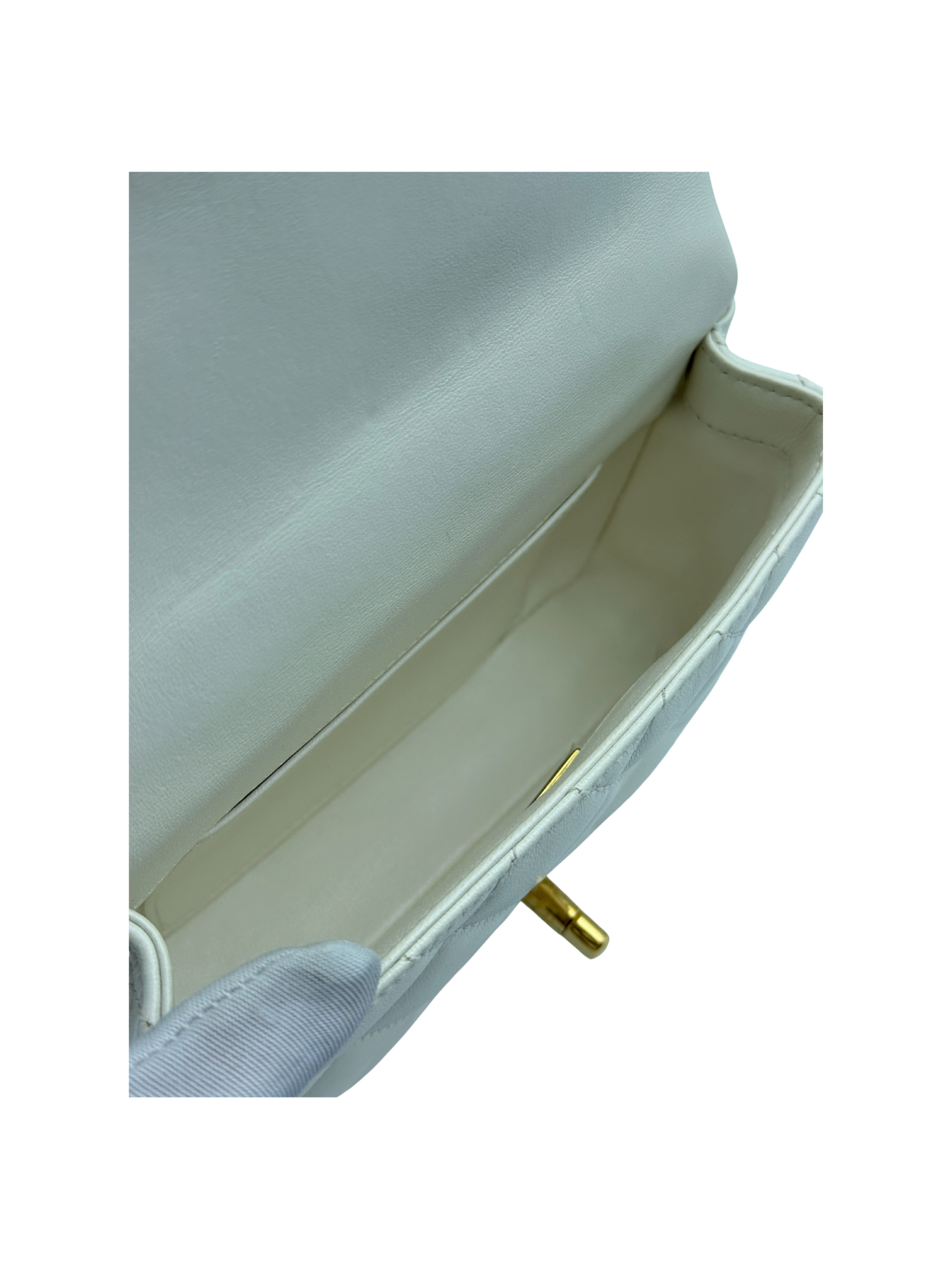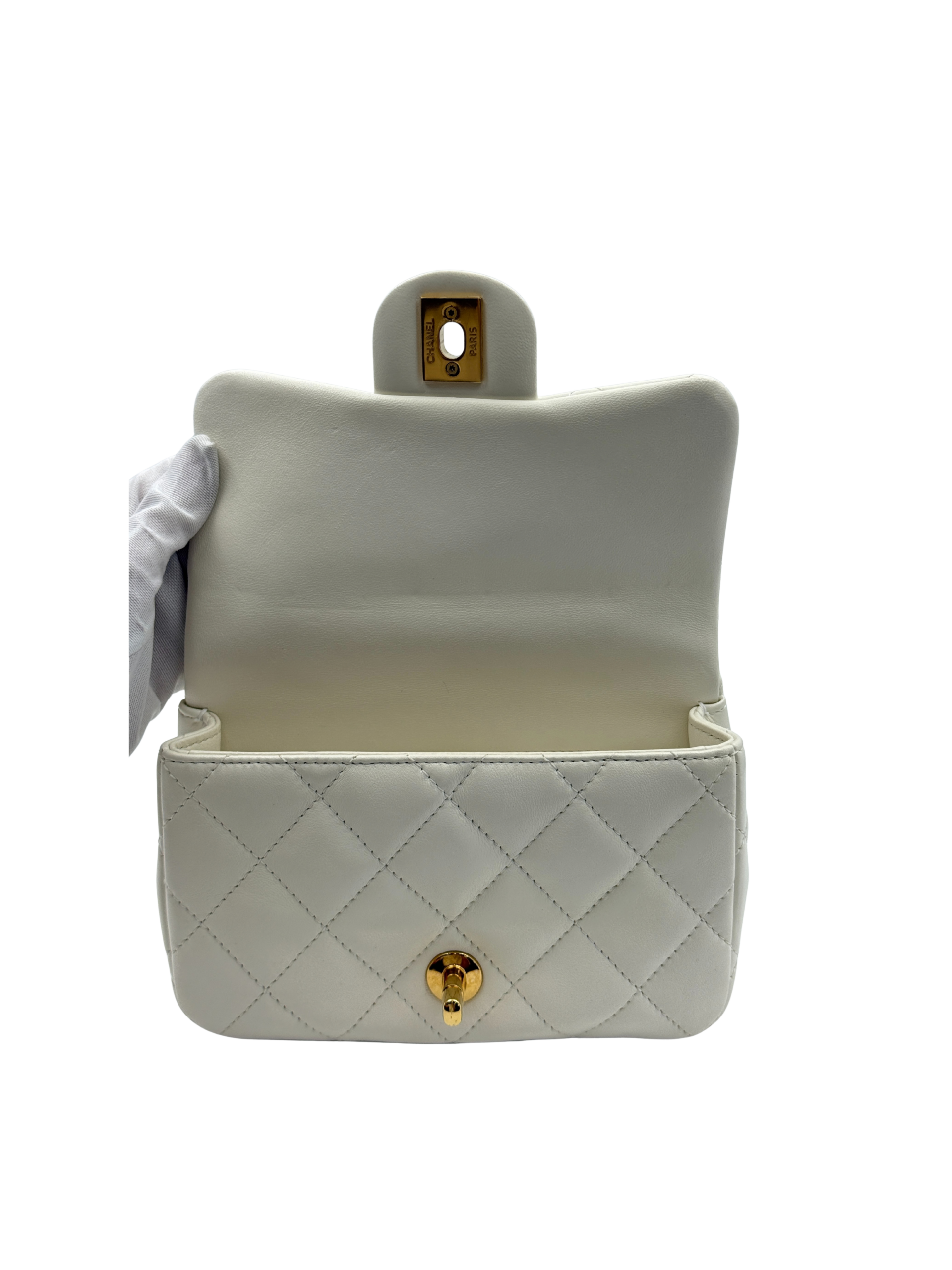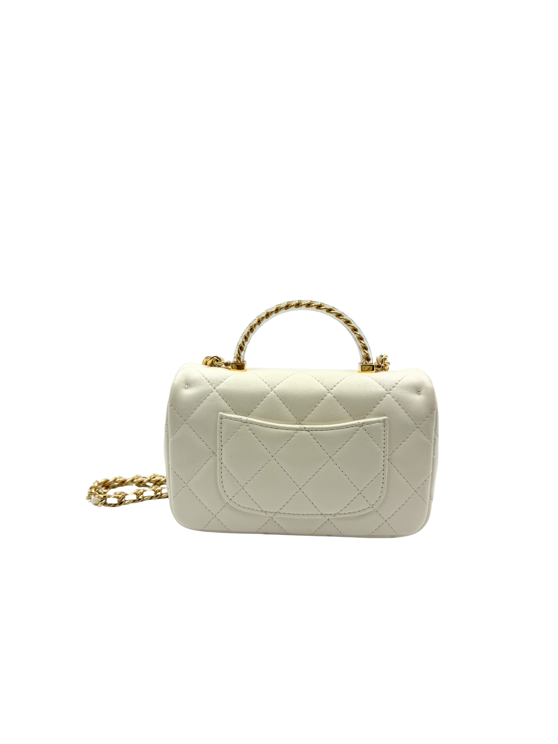 / CHANEL MINI FLAP WITH ACRYLIC HANDLE WHITE