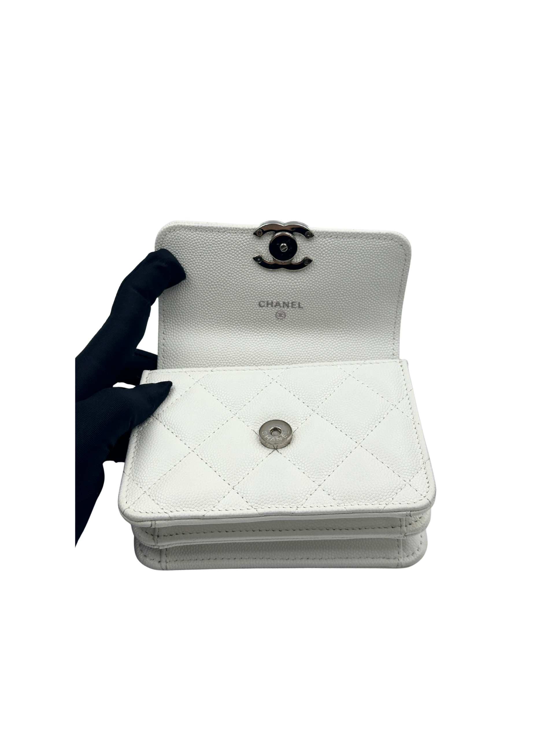 CHANEL MINI WOC WITH HANDLE WHITE WHITE CAVIAR SHW