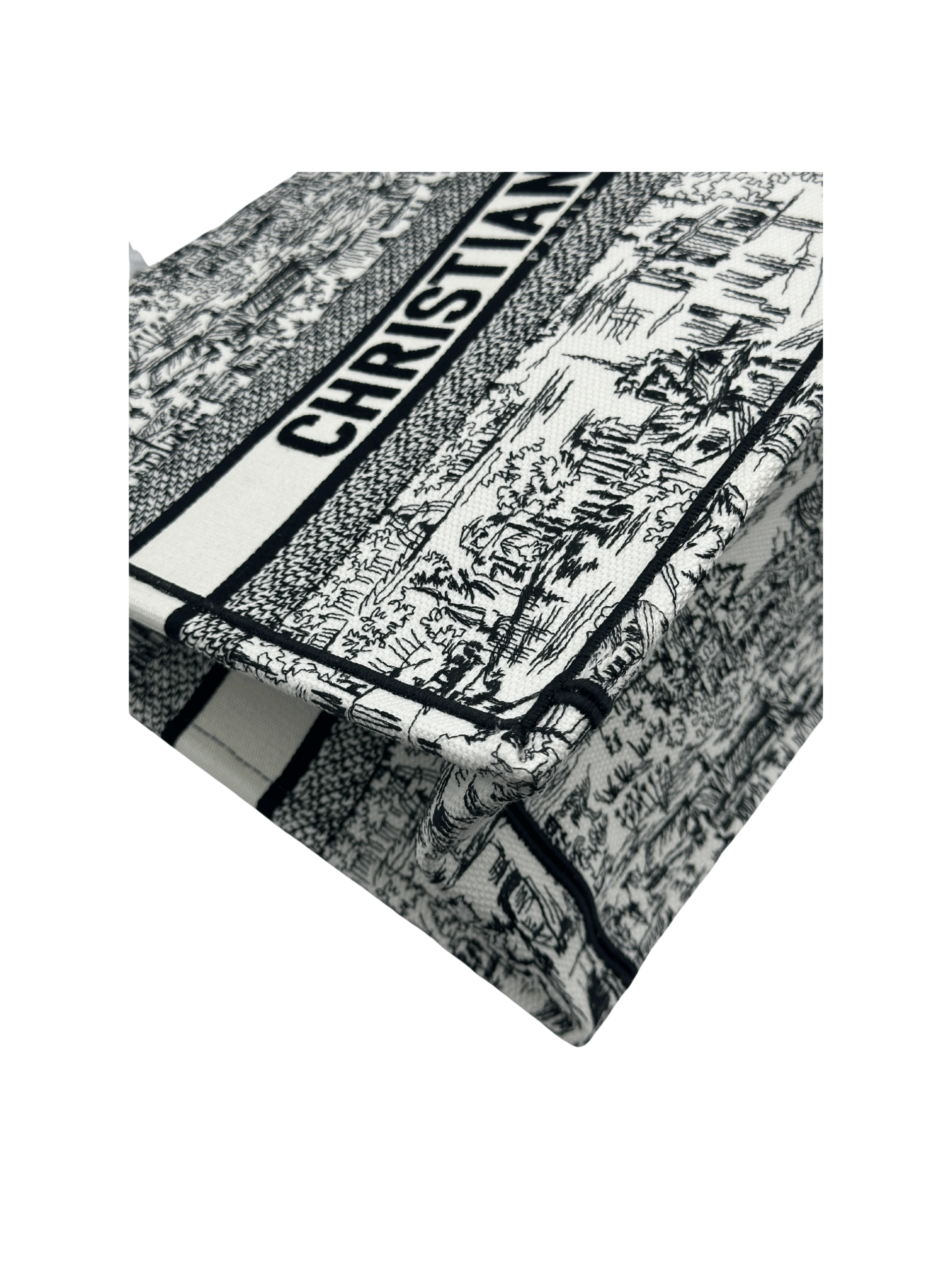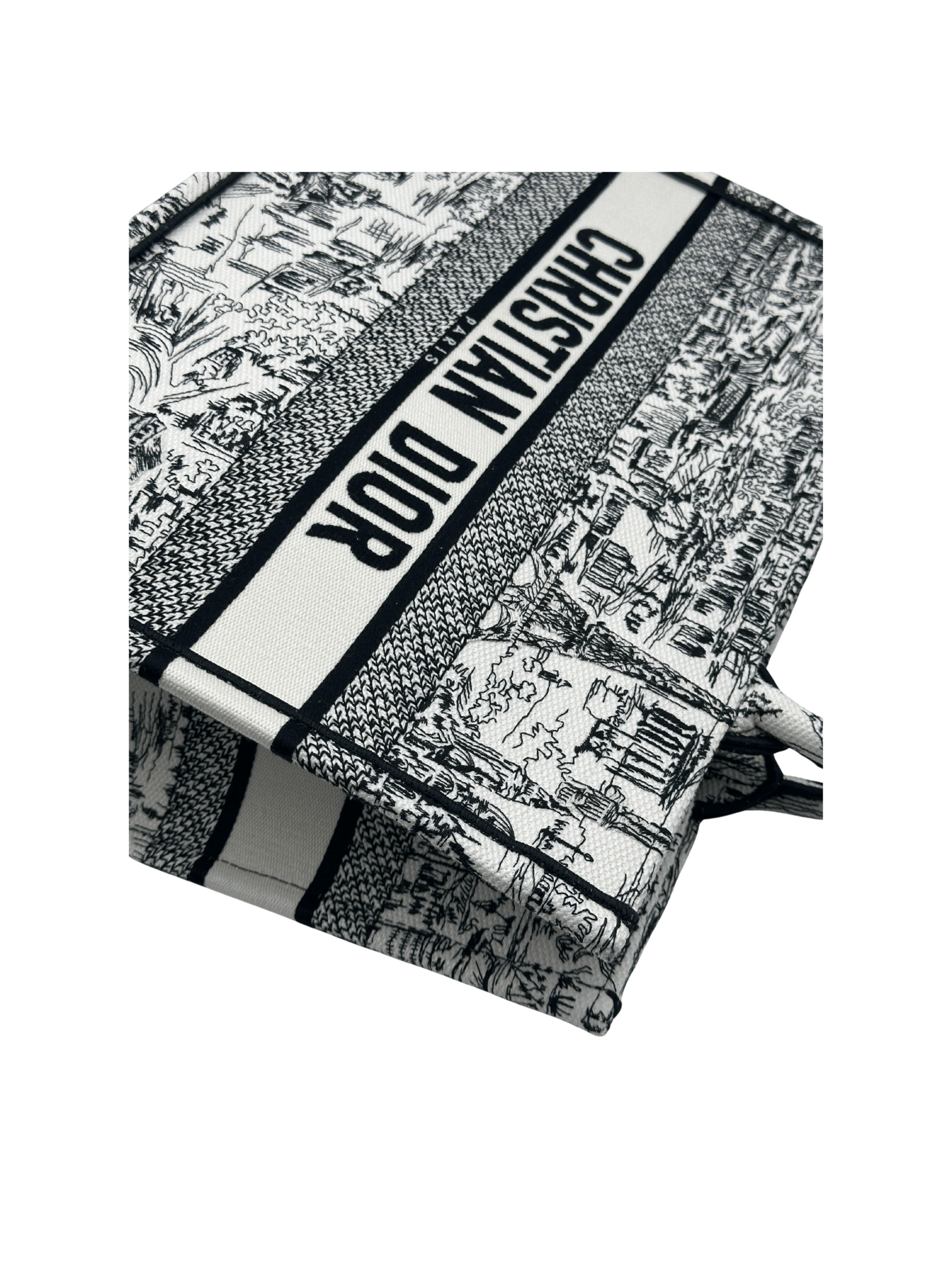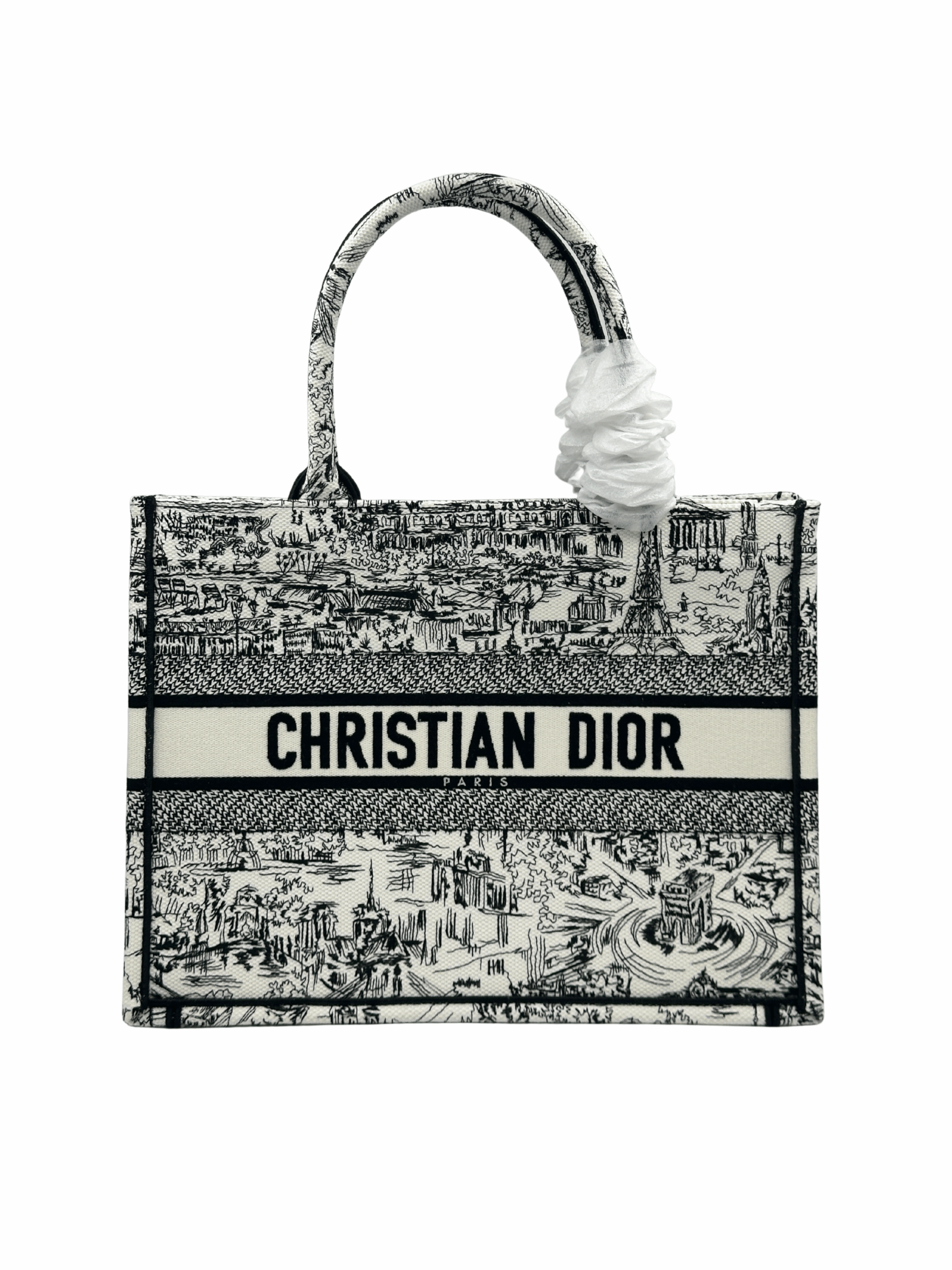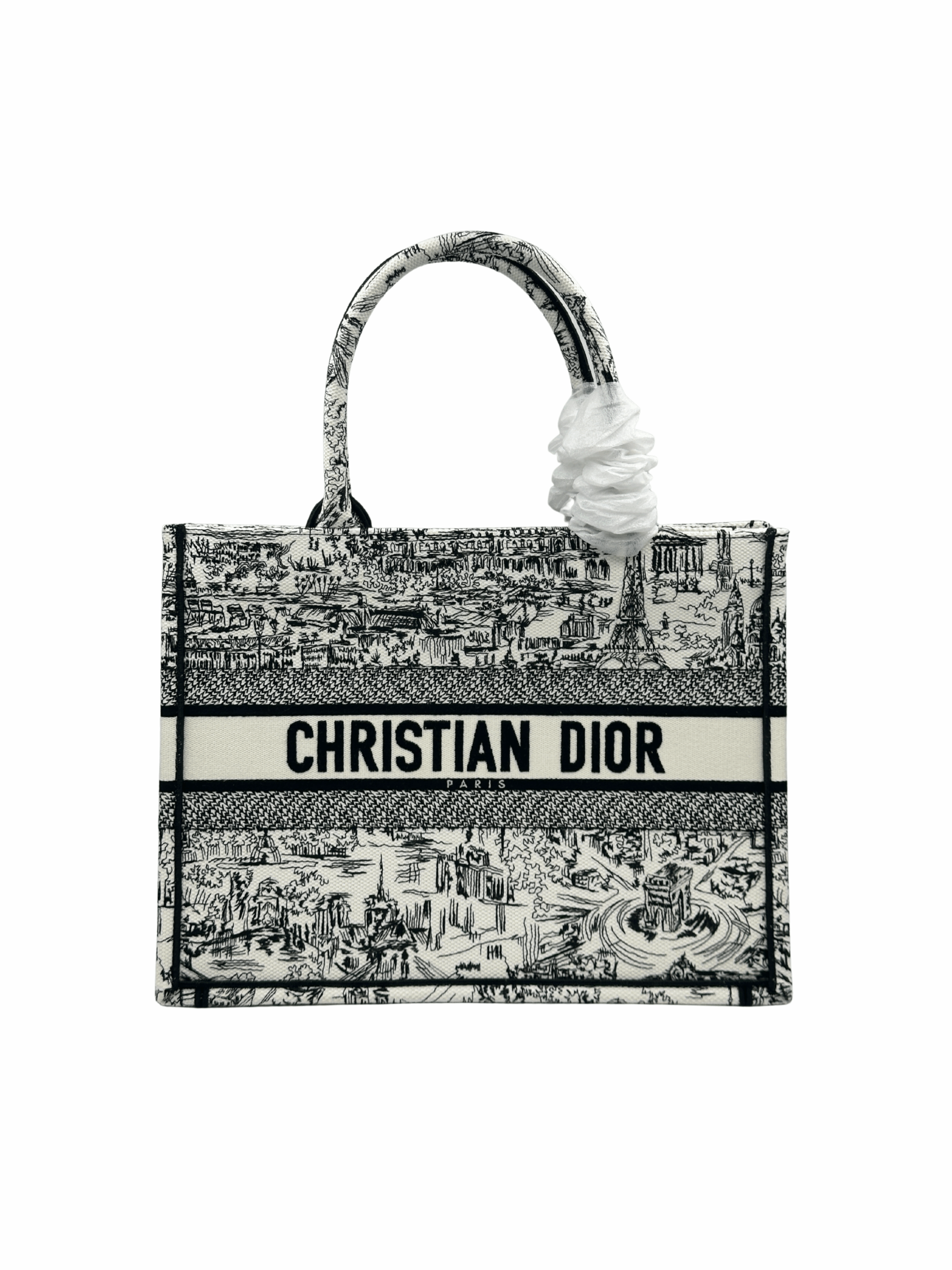 / DIOR MEDIUM DIOR BOOK TOTE WHITE AND BLACK PARIS ALLOVER EMBRIODERY