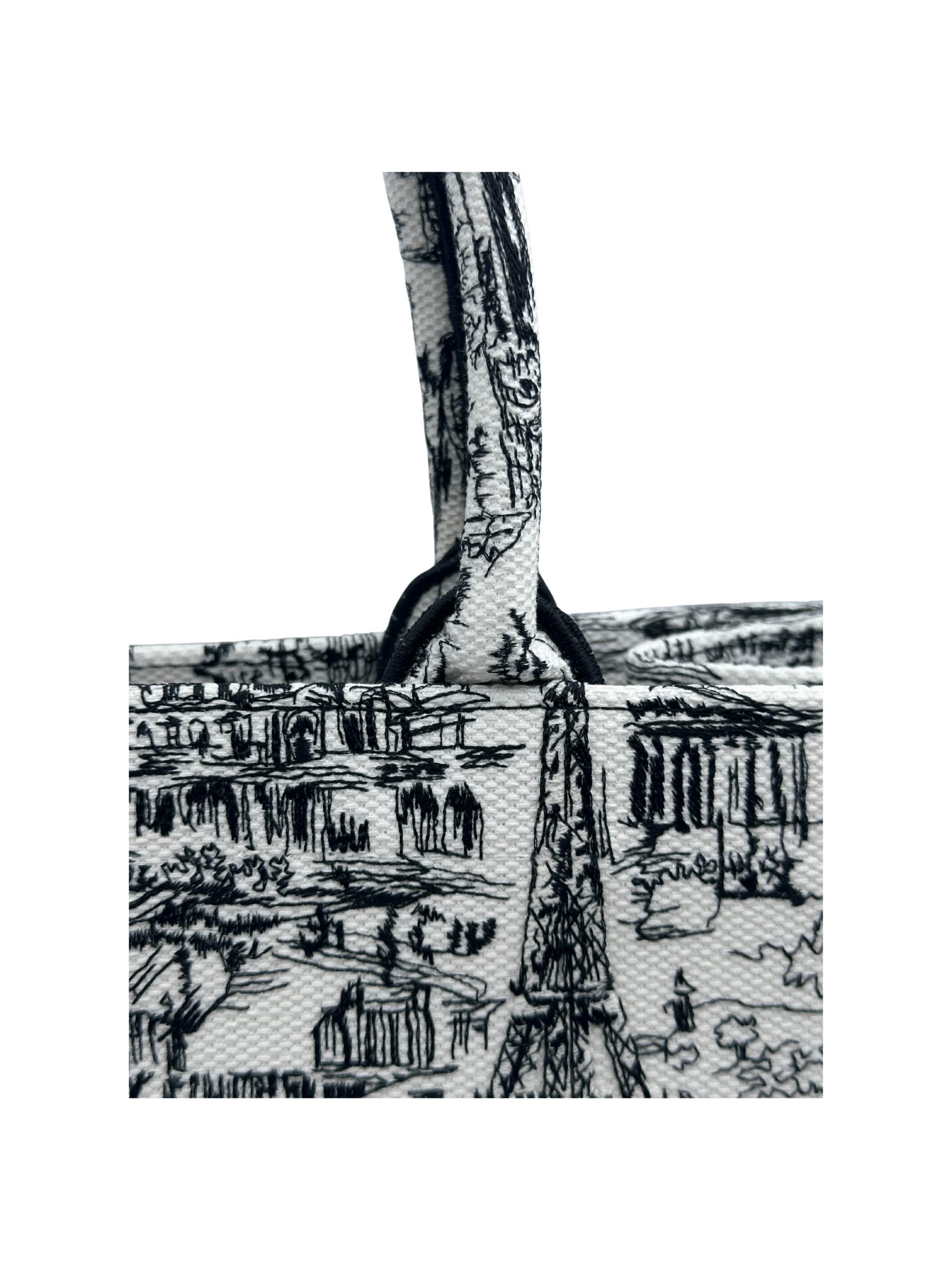 DIOR MEDIUM DIOR BOOK TOTE WHITE AND BLACK PARIS ALLOVER EMBRIODERY