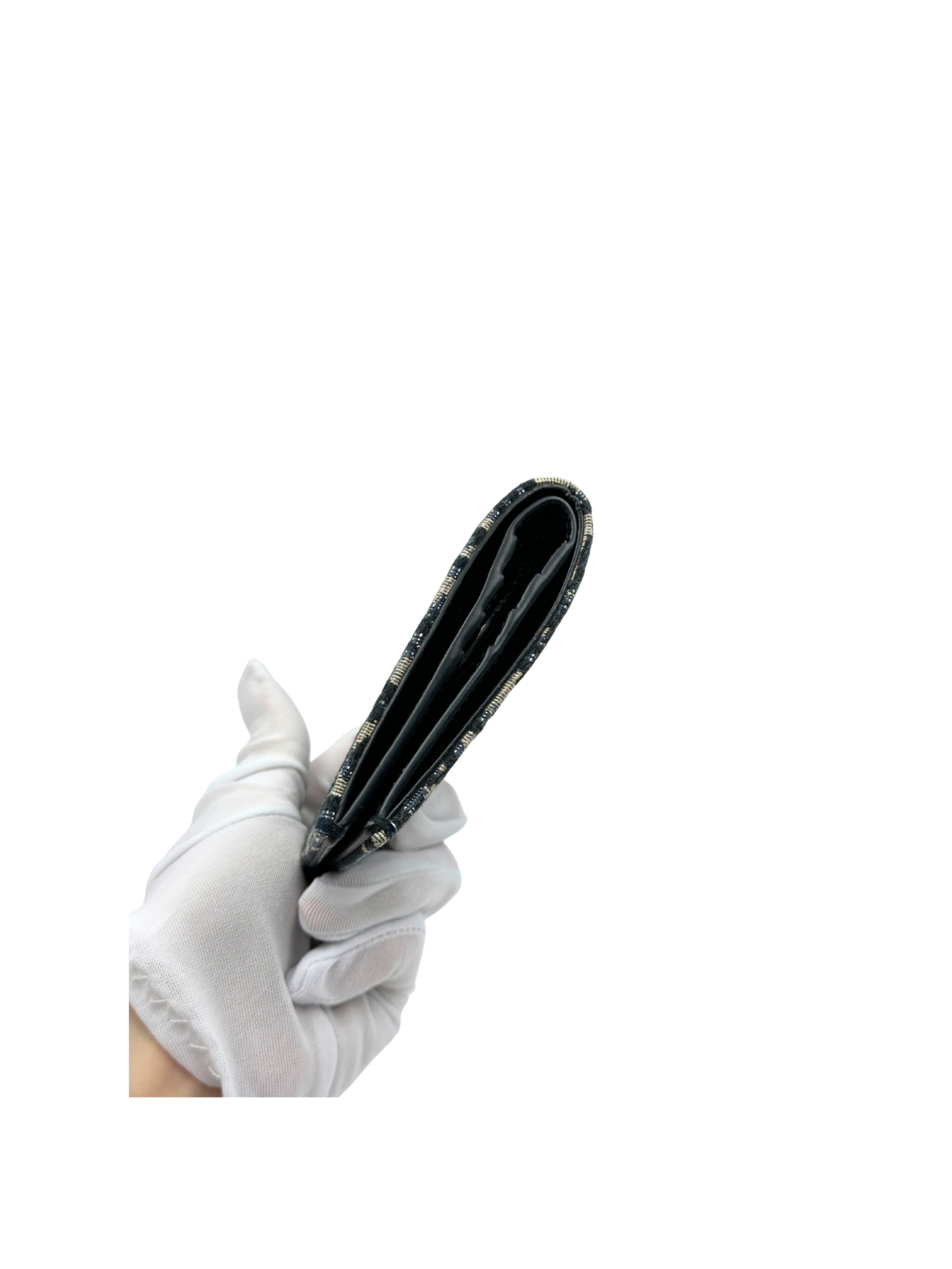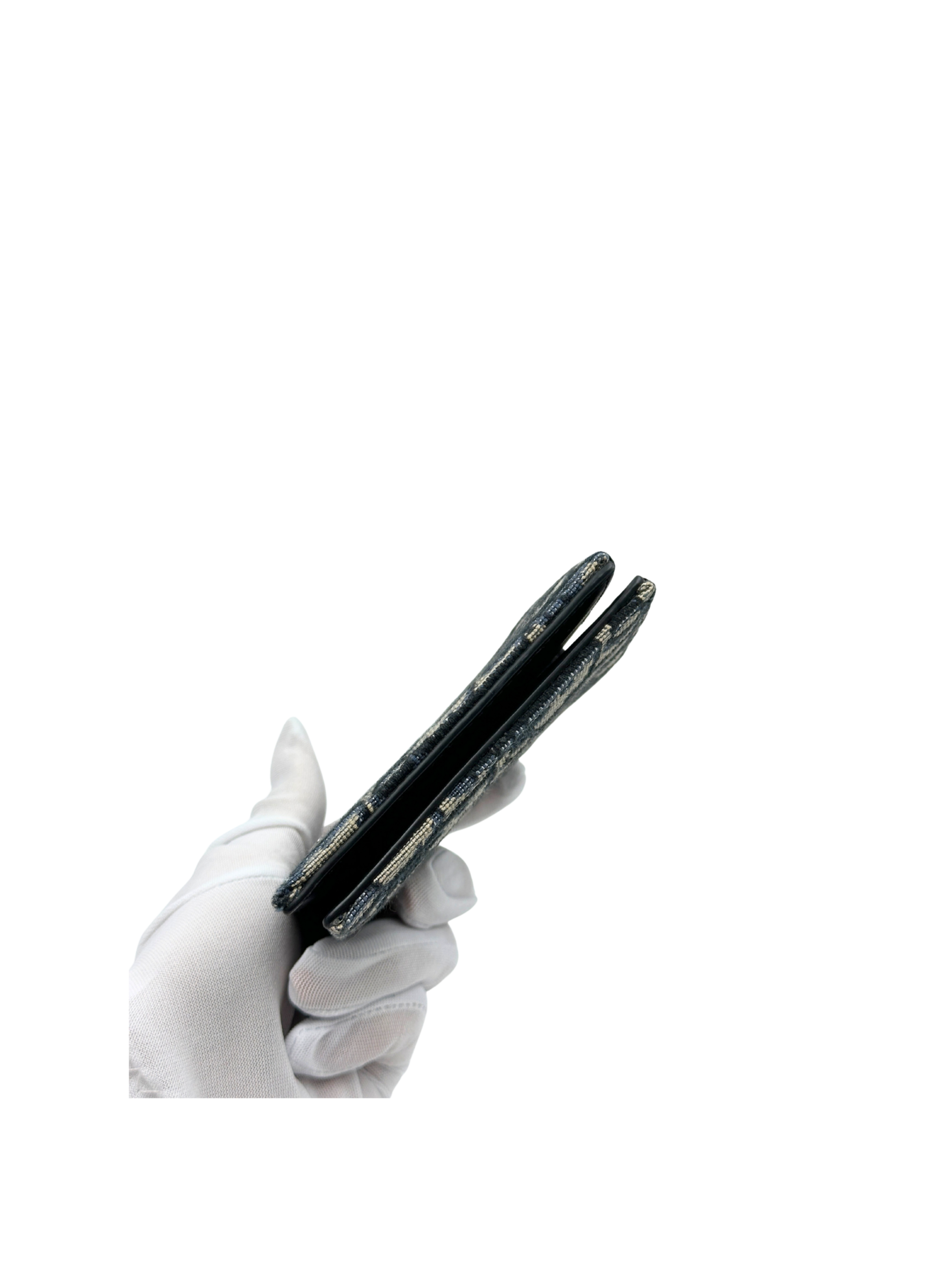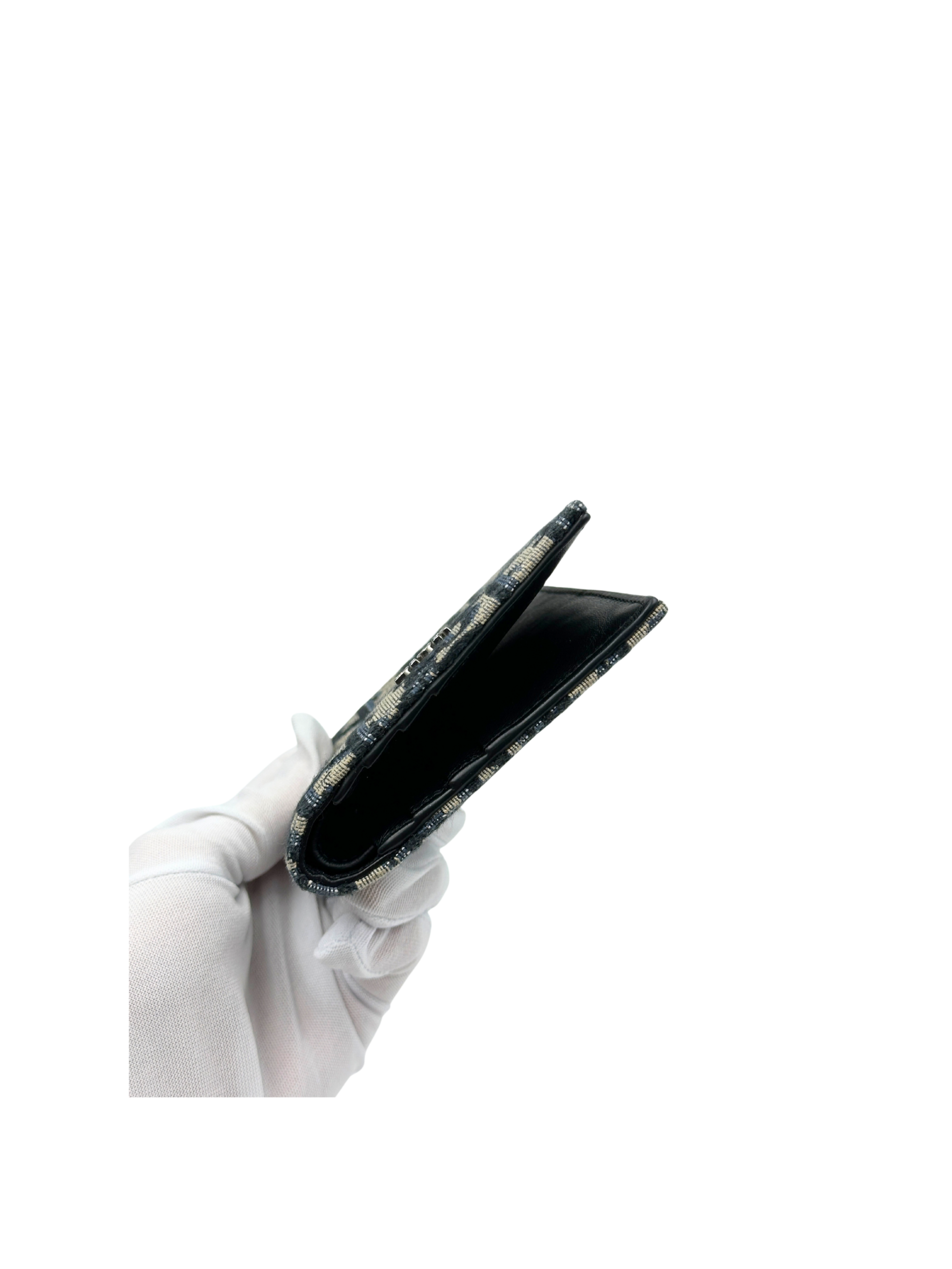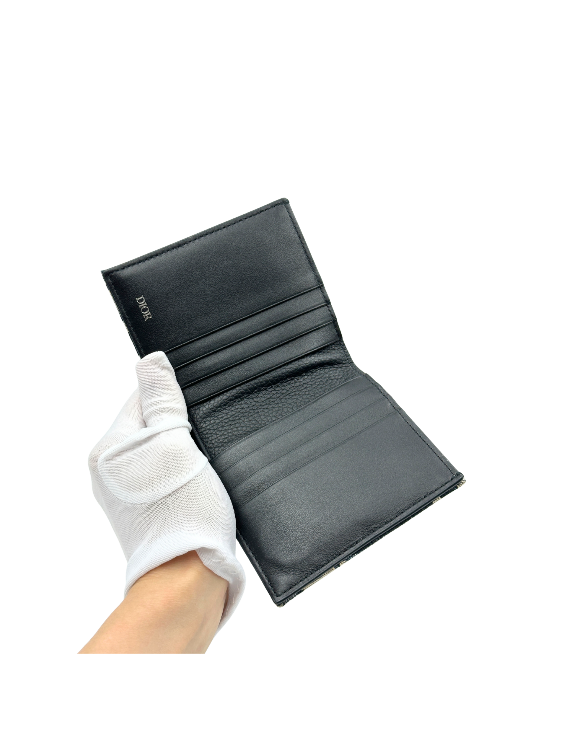 DIOR VERTICAL BIFOLD WALLET BEIGE AND BLACK DIOR OBLIQUE JACQUARD