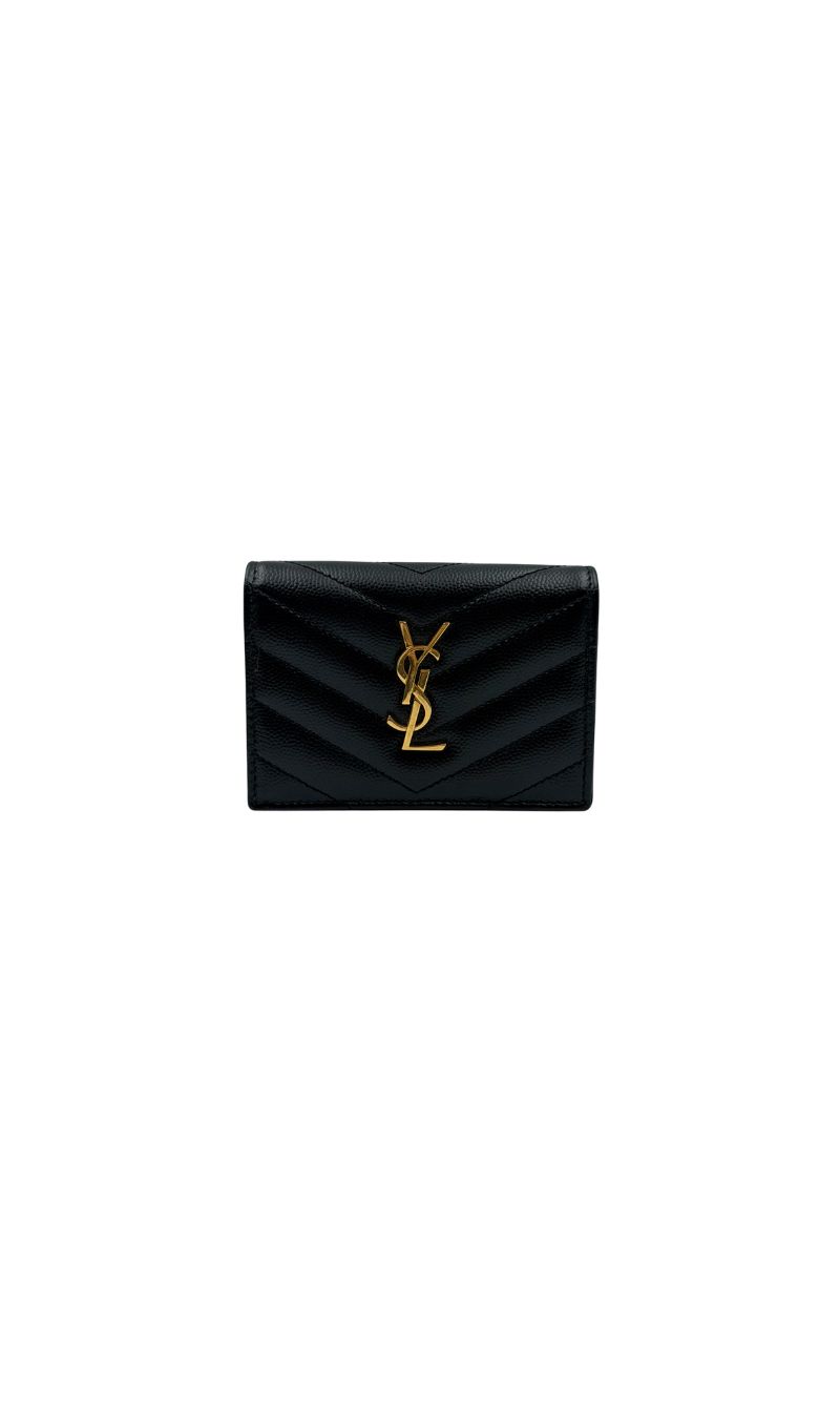 YSL CASSANDRE MATELASSÉ BUSINESS CARD CASE IN GRAIN DE POUDRE
