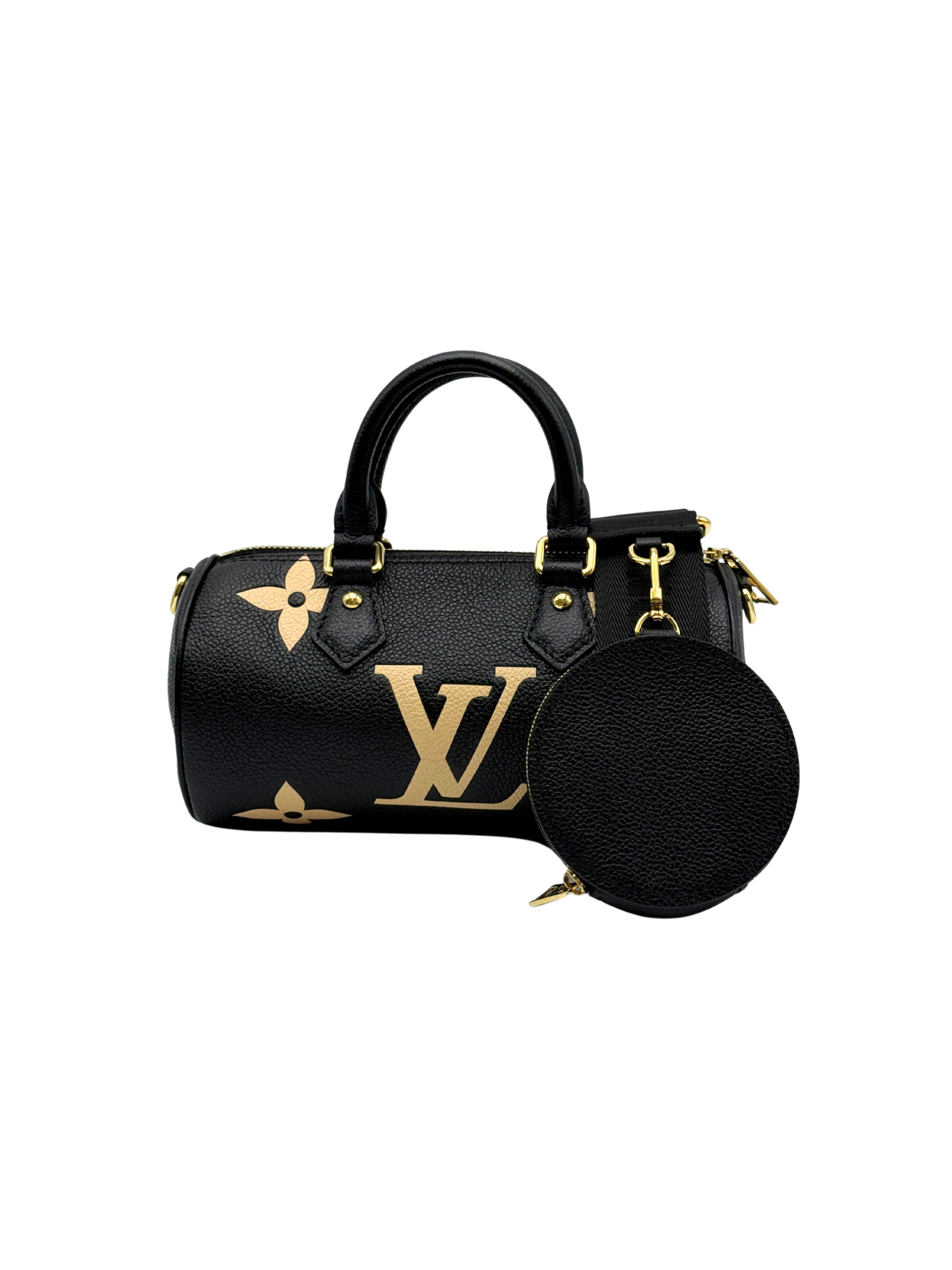 LV PAPILLON BB MONOGRAM EMPRIENTE LEATHER BLACK/BEIGE